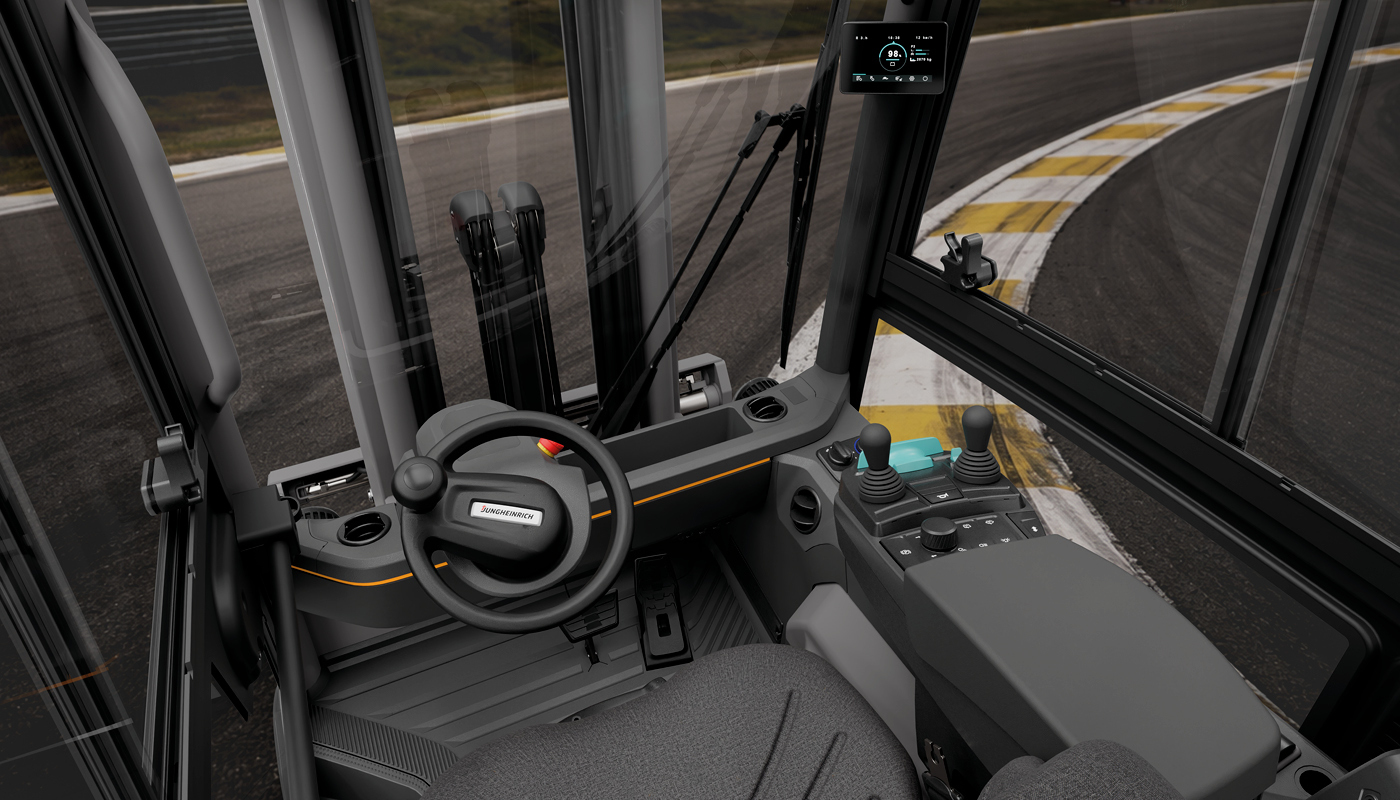 Même celui qui est en tête de course doit parfois jeter un coup d'œil derrière lui : comme la plupart des accidents impliquant des chariots de manutention se produisent lors des manœuvres en marche arrière, le montant B redessiné réduit l'angle mort et rend la conduite visiblement plus sûre.
